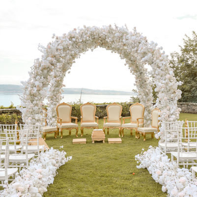 WE OFFER A RANGE OF CONTEMPORARY AND TRADITIONAL MANDAPS, FROM CARVED DESIGNS TO ELEGANT FLORAL WRAPS. OUR TEAM WORKS CLOSELY WITH YOU TO CREATE A BESPOKE, STUNNING MANDAP THAT PERFECTLY REFLECTS YOUR VISION.